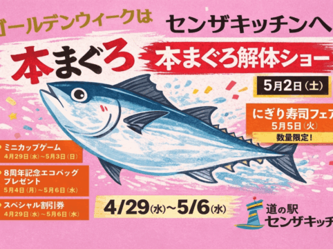 お知らせ/道の駅センザキッチン ゴールデンウィーク期間中の集客施策について 2026年4月16日 by info_mg6613hc 当社が運営する「道の駅センザキッチン」において、ゴールデンウィーク期間中の来館促進および地域活性化を目的とした各種イベントを実施いたしますのでご案内申し上げます。 本イベントでは、目玉企画として2026年5月2日(土)に...